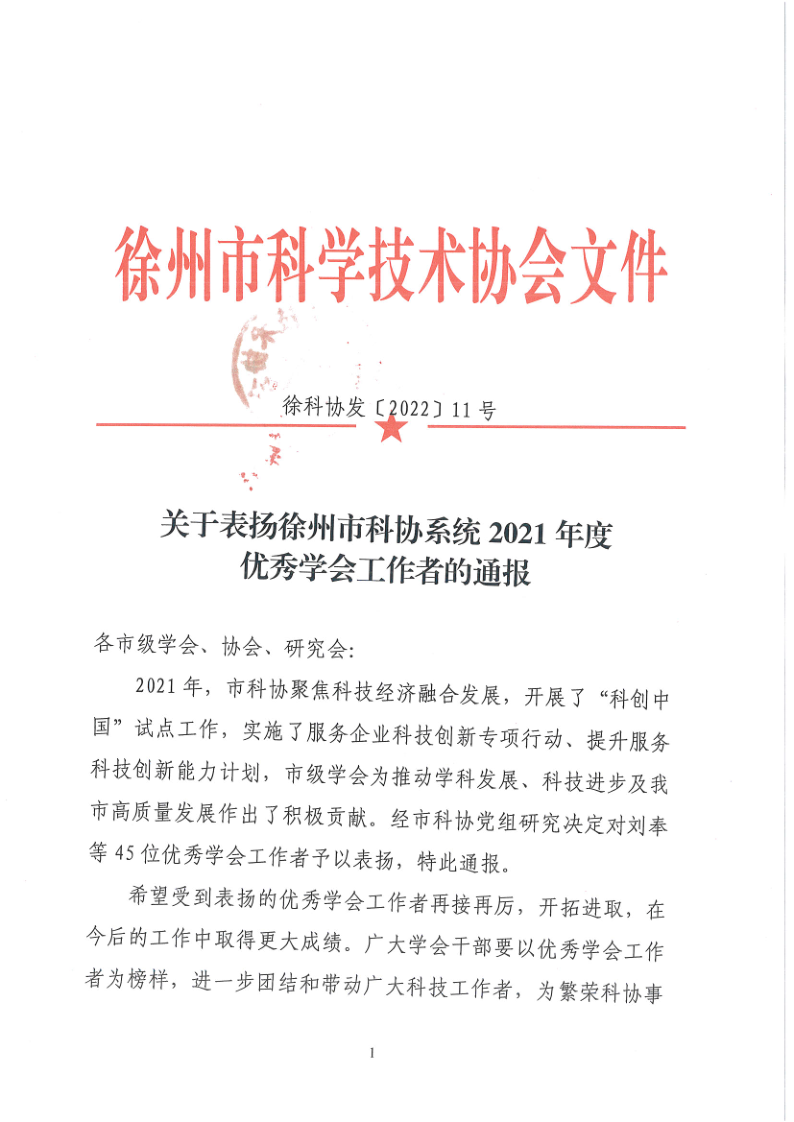 2022年5月10日,徐州市科協(xié)系統(tǒng)為推動學科發(fā)展、科技進步及我市高質(zhì)量發(fā)展做出積極貢獻的40余位參會人員予以表揚通報。我司總經(jīng)理、制冷高級工程師李蘇先生獲得了徐州市制冷學會的評選提名,入選“優(yōu)秀學會工作者”。李蘇先生自擔任徐州市制冷學會技術咨詢專業(yè)委員會主任以來,一直致力于制冷技術的研發(fā)與創(chuàng)新,積極參與學會響應市科協(xié)組織的各項活動,提出并推進了3項技術課題并開展工作,在學會中表現(xiàn)優(yōu)異,工作突出,獲得了徐州市制冷學會的高度認可并予以評選提名,經(jīng)市科協(xié)黨組研究決定對李蘇等40余位優(yōu)秀學會工作者予以通報表揚。