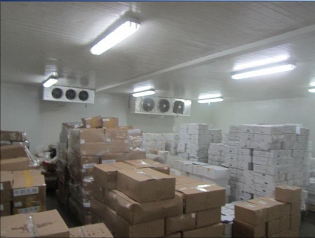 1#-12#高溫庫共選用開利2臺主機(jī)為85P×2加上1臺開利150*1的并聯(lián)機(jī)組,在-10℃/35℃工況下,該機(jī)組總制冷量為485.8kW,功率為183kw, 1#-5#保鮮庫每間庫配置2臺DL360的冷風(fēng)機(jī),6#-12#保鮮庫每間庫配置2臺DL310的冷風(fēng)機(jī),按系統(tǒng)50%負(fù)荷同時用,每天每間入貨量約15%設(shè)計(jì)。